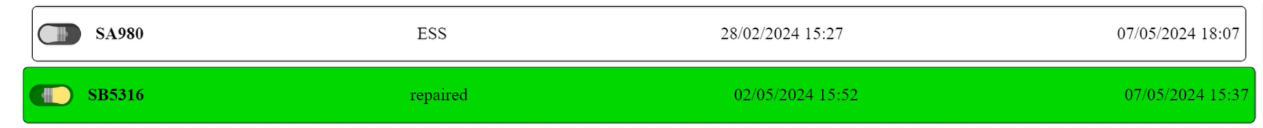 All incoming data is stored in a MySQL database and visualized through a web-based interface accessible from any device on the local network. Operators can instantly search for a specific item using its serial or follow number, view its current location, and monitor its movement history. For quick on-site identification, the web interface includes an LED “locate” feature — activating a visual indicator on the reader module associated with the selected item. This provides an intuitive and efficient way to find items within a complex workspace, reducing time loss and human error.