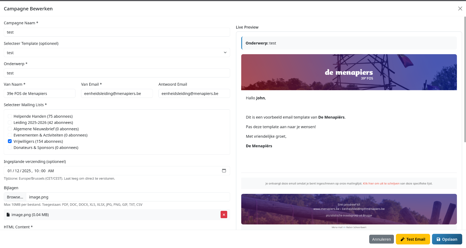 Custom email marketing and campaign management system. It provides complete control over subscriber management, email template creation, campaign distribution, and analytics tracking.